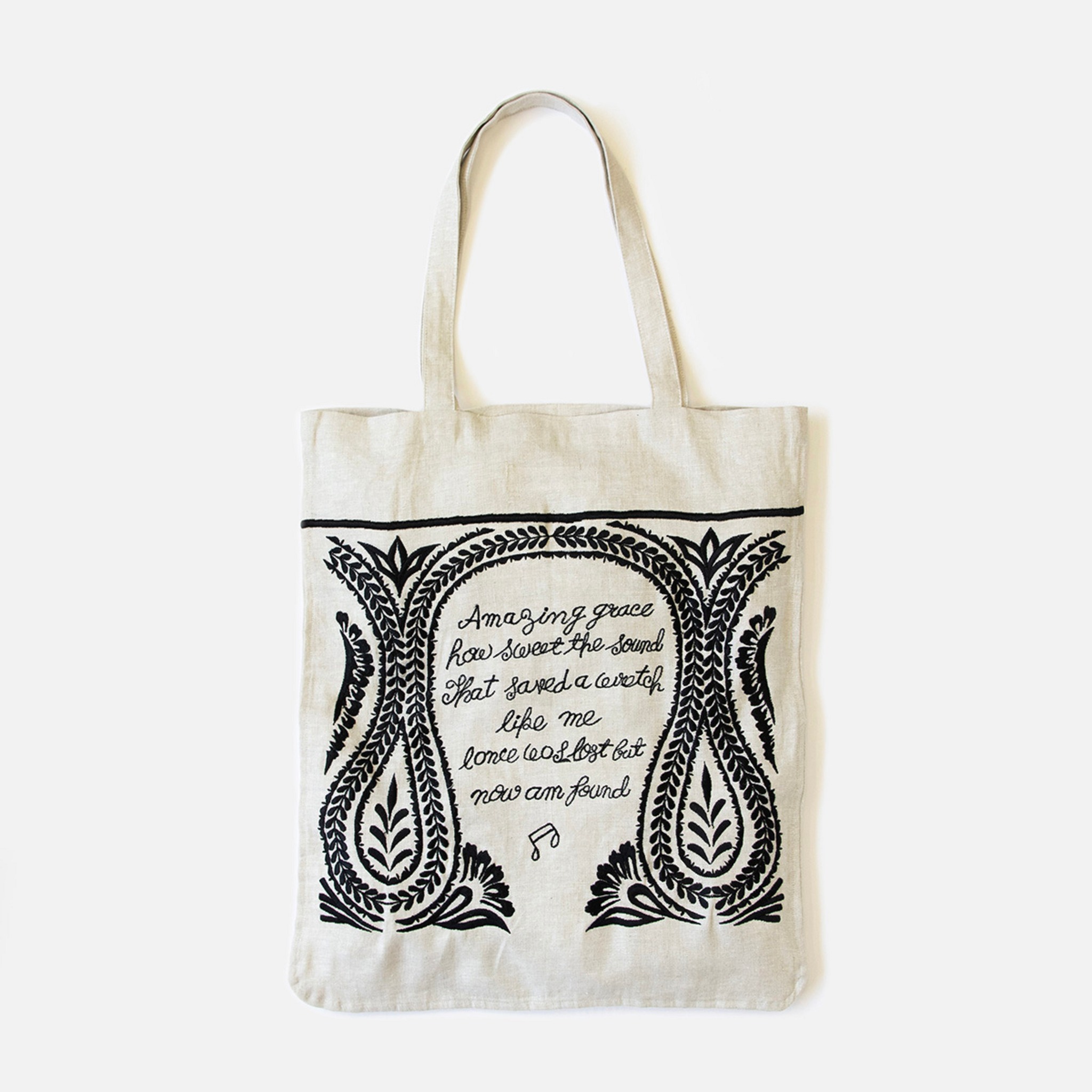 このトートバッグは良質な麻の素材を使い、世界で最も多くの人々に歌い継がれている名曲のAmazing